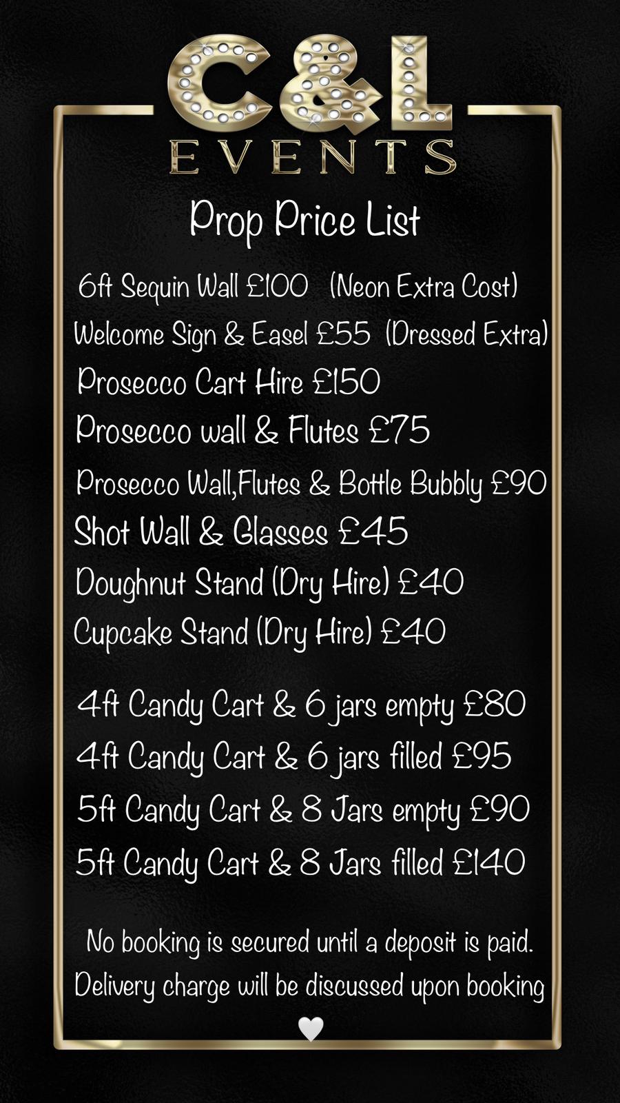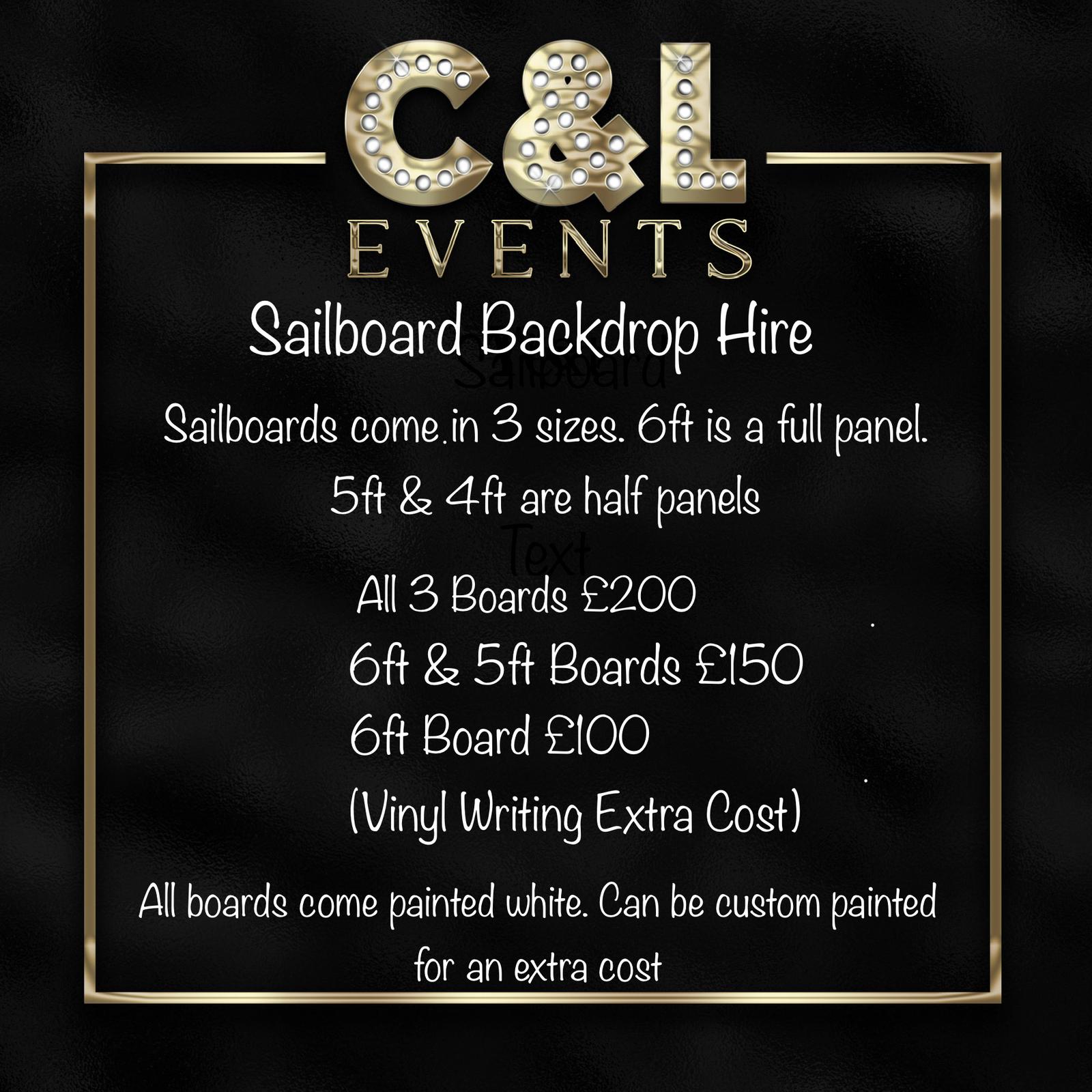 We also have available for hire a Prosecco Cart, Prosecco Wall, Shot Wall & Glasses, Candy Cart, Shimmer Backdrops, Welcome Signs, Sailboard Backdrops and much more.